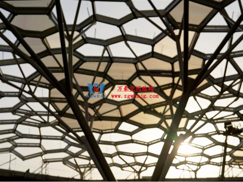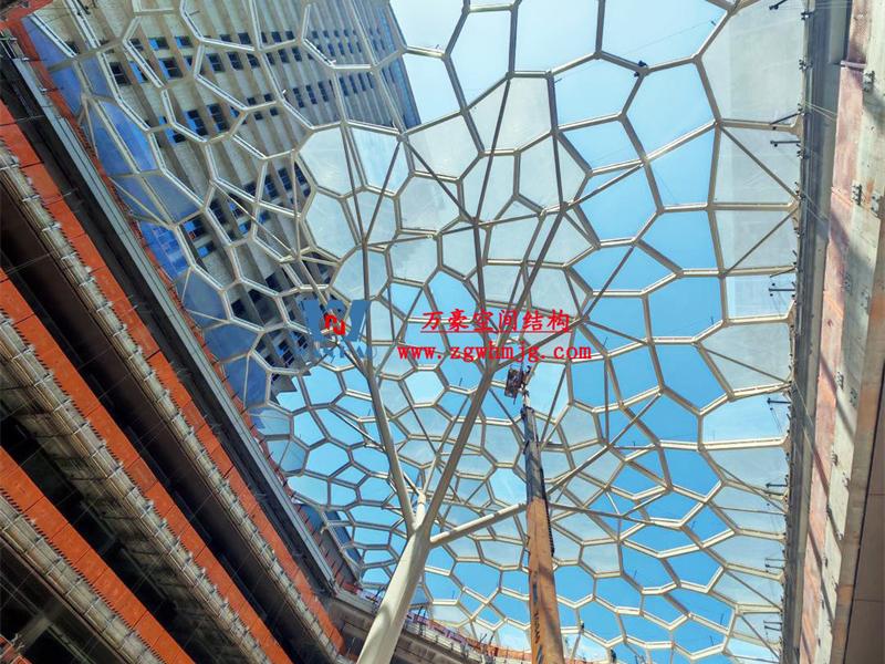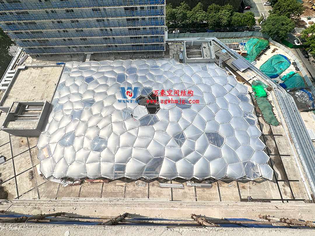 安吉縣昌碩小區(qū)地塊房產(chǎn)開(kāi)發(fā)項(xiàng)目鋼結(jié)構(gòu)天幕項(xiàng)目,該項(xiàng)目用鋼量約260噸,ETFE膜展開(kāi)面積約3182平米。