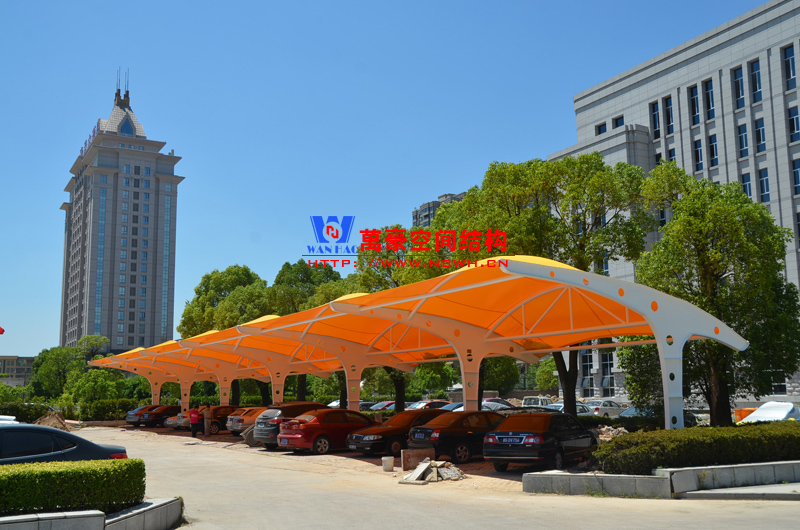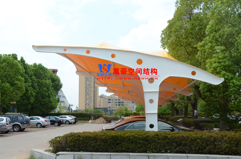 索膜結(jié)構(gòu)停車棚,是以建筑織物,即膜材料為張拉主體,與支撐構(gòu)件或拉索共同組成的結(jié)構(gòu)體系,它以其新穎獨(dú)特的建筑造型,良好的受力特點(diǎn)——成為大跨度空間結(jié)構(gòu)的主要形式之一。膜材料是指聚酯纖維基布或PVDF、PVF、PTFE等不同的表面涂層,配以優(yōu)質(zhì)的PVC組成的具有穩(wěn)定的形態(tài),并可承受一定載荷的建筑紡織品。它的壽命因不同的表面涂層而異,一般可達(dá)成10-20年。