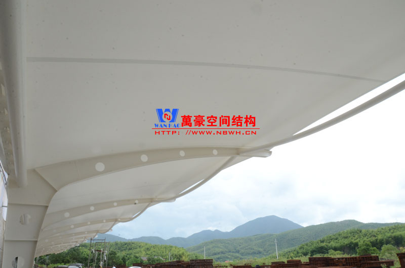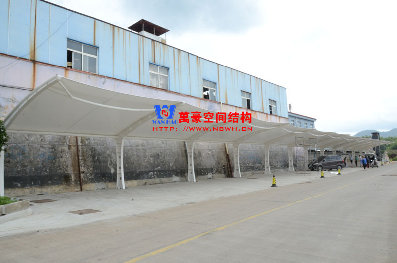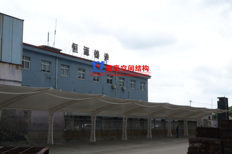 恒源鑄造膜結(jié)構(gòu)車棚項目由寧波萬豪空間結(jié)構(gòu)工程有限公司承建,地址位于浙江省寧波市奉化區(qū)莼湖鎮(zhèn)田隴村冒盤線北寧波恒源鑄造有限公司內(nèi),該項目用鋼量7噸,膜結(jié)構(gòu)展開面積342平米,共計24個車位。