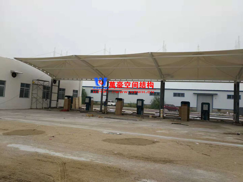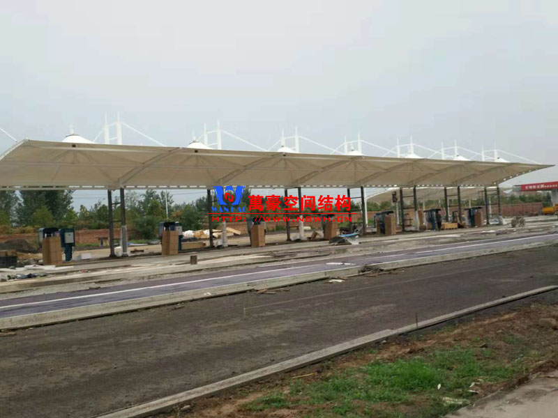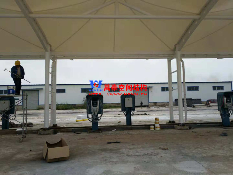 內(nèi)黃縣公交充電樁膜結(jié)構(gòu)車棚工程位于河南省安陽(yáng)市內(nèi)黃縣龍翔物流公交站內(nèi),由寧波萬(wàn)豪空間結(jié)構(gòu)工程有限公司承建。本工程使用的是白色pvc膜材,膜結(jié)構(gòu)展開(kāi)面積2300平米,用鋼量65噸,共計(jì)70個(gè)車位。
