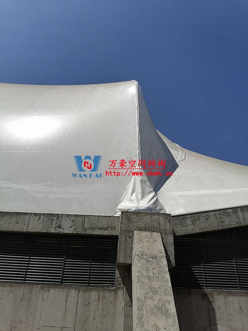 本項(xiàng)目膜結(jié)構(gòu)罩棚鋼結(jié)構(gòu)高度40米,跨度115米,膜結(jié)構(gòu)展開面積25000平米。