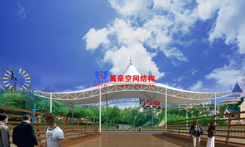 什么是出入口膜結(jié)構(gòu)?出入口膜結(jié)構(gòu)一般指的是應(yīng)用了張拉膜結(jié)構(gòu)的出入口建筑,比如小區(qū)崗?fù)?、車庫出入口、收費(fèi)站等。出入口膜結(jié)構(gòu)體系由膜面、邊索、脊索、谷索、支承結(jié)構(gòu)、錨固系統(tǒng),以及各部分之間的連接節(jié)點(diǎn)等組成。以上是出入口膜結(jié)構(gòu)工程的設(shè)計(jì)效果圖,改天萬豪再給大家展示下實(shí)際案例。