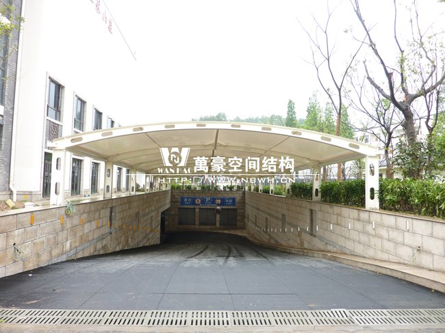 陽明溫泉山莊車庫出入口膜結(jié)構(gòu)位于浙江省寧波余姚市陸埠鎮(zhèn)陽明溫泉山莊內(nèi)。山莊總建筑面積6.8萬平方米,其建筑群由酒店主樓、別墅、健診中心、室內(nèi)外溫泉區(qū)等區(qū)域組成,集溫泉度假、商務(wù)會(huì)議、高端宴席三大主題。地下車庫出入口膜結(jié)構(gòu)以其獨(dú)特的造型和良好的性能,與陽明溫泉山莊顯得十分搭配,為其增加一份特有的色彩。