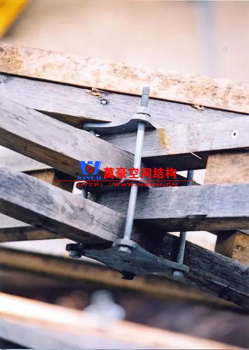 工程師設計了一種用金屬絲綁扎的方式。這種連接方式使構件都能貫通,大大簡化節(jié)點構造、節(jié)省了組裝成本。