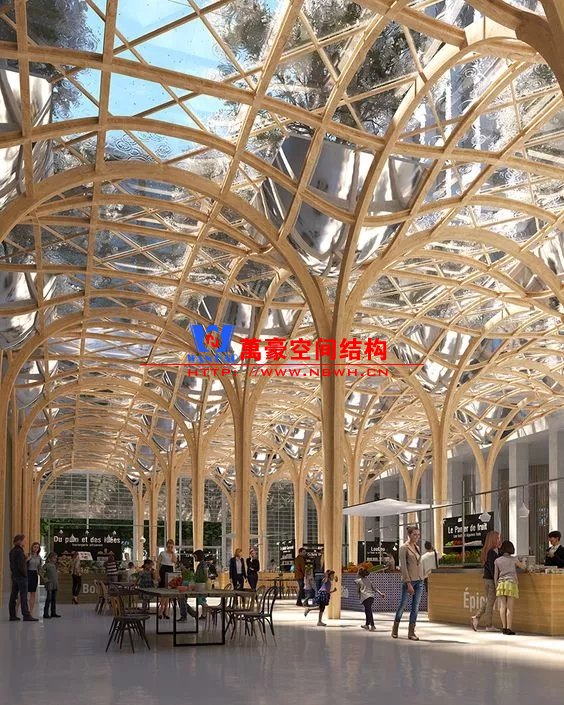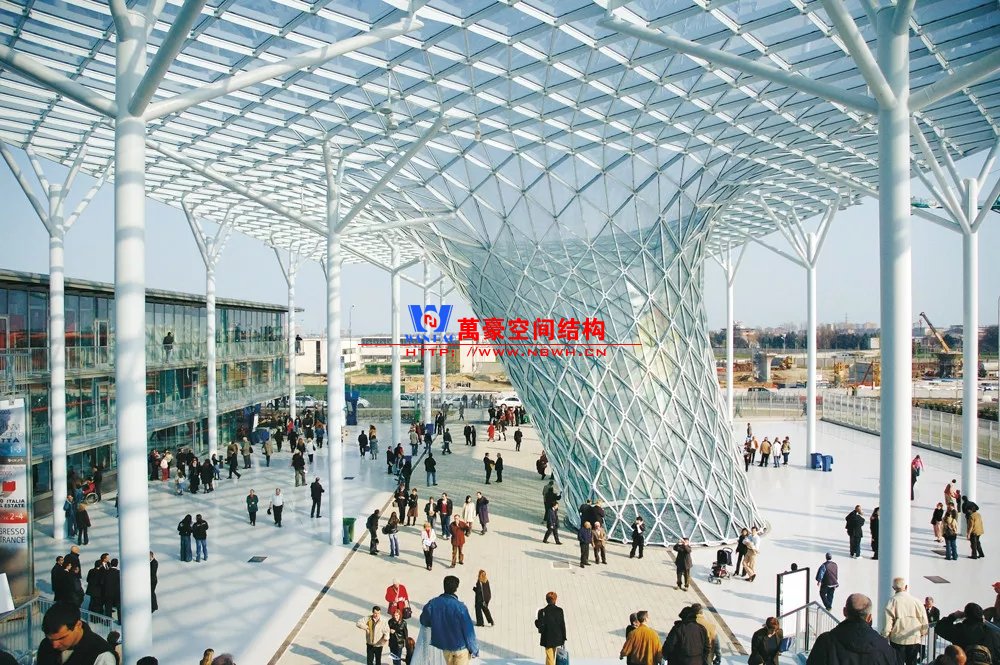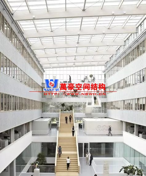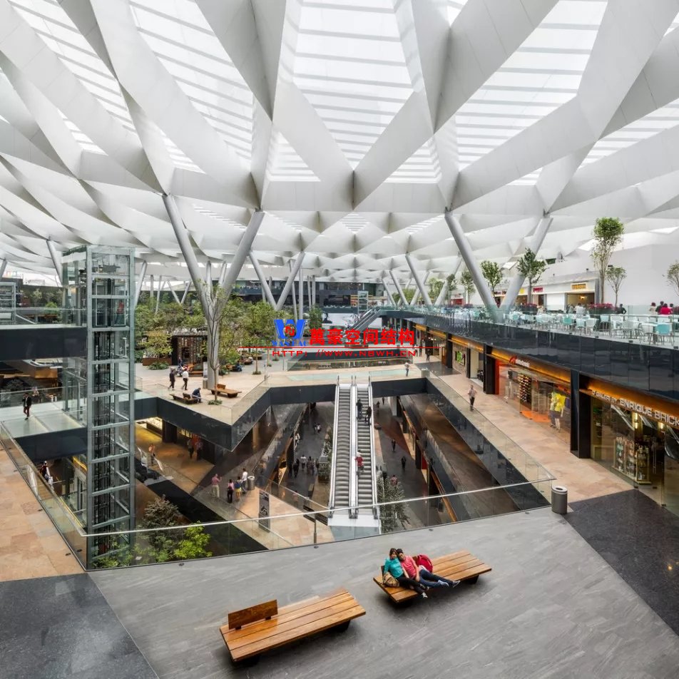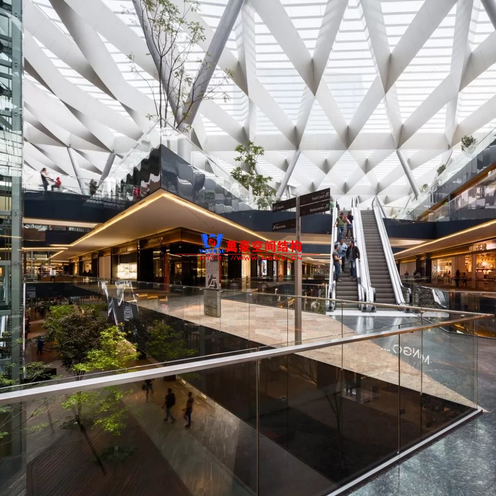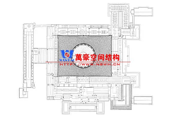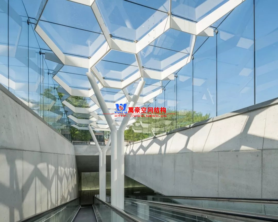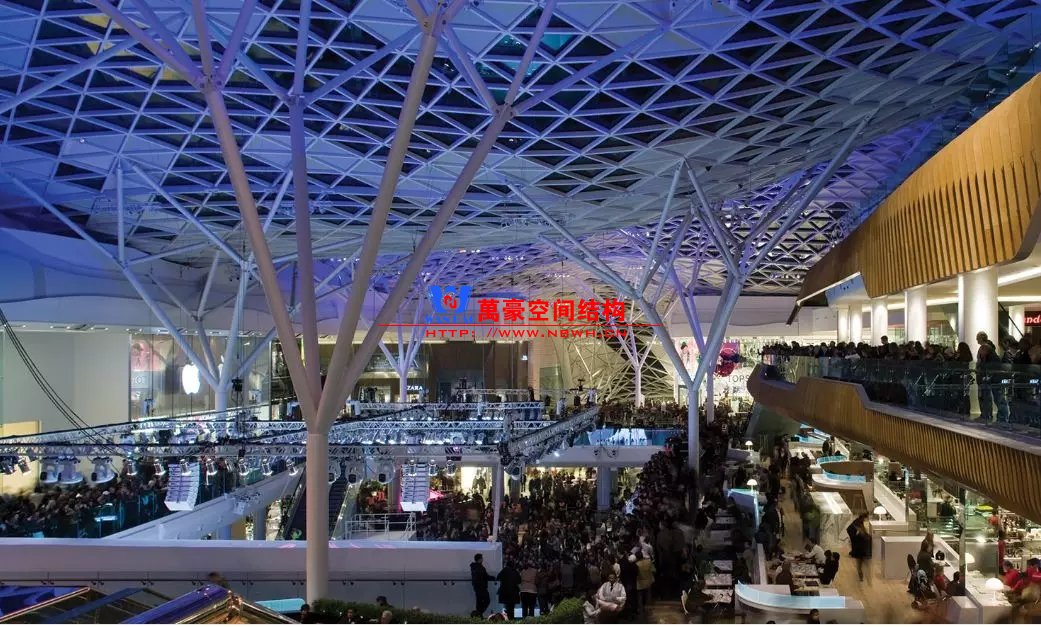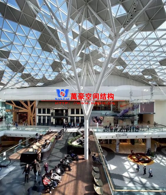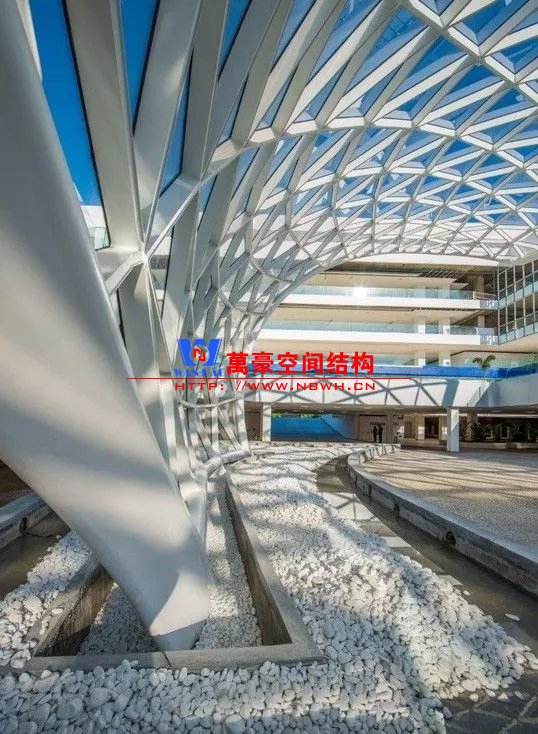 裙房之間的天幕為樹(shù)形柱支承