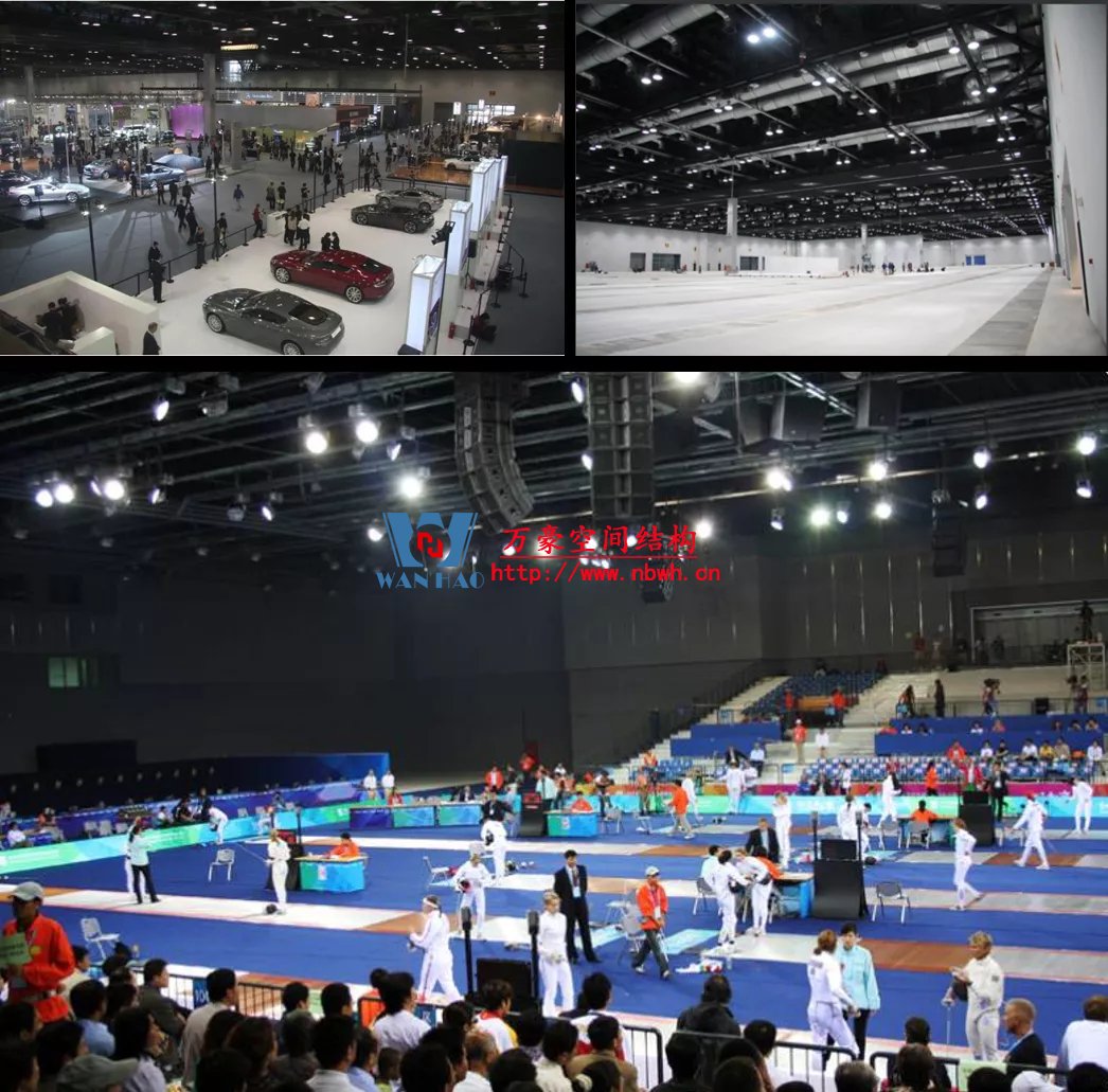 通用空間概念為現(xiàn)今大量建造的體育場、體育館、展廳等提供了功能合理性的理論基礎(chǔ)。盡管這些建筑大多只能稱為“多用途場館”,與密斯描述的空間通用性相距甚遠(yuǎn)。從某種意義上來說,通用空間在實踐中更多的表現(xiàn)為空間的多功能特征。同一大空間中多種活動的需求與強調(diào)功能分區(qū)的觀點截然相反,提出了實現(xiàn)建筑、結(jié)構(gòu)、機電整體性技術(shù)整合的新要求。