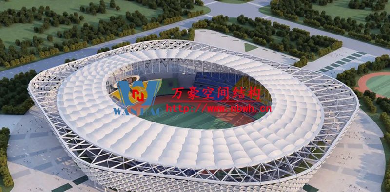三亞體育場總建筑面積8.8萬余平米,體育場屋蓋為輪輻式索桁架結(jié)構(gòu),平面投影短軸224米、長軸261.8米,中心開口短軸134米,長軸171.8米。為提升結(jié)構(gòu)抗風(fēng)能力,屋蓋結(jié)構(gòu)布置內(nèi)環(huán)交叉索;為降低內(nèi)環(huán)交叉索對鎖夾造成的不平衡力,該項(xiàng)目創(chuàng)新應(yīng)用了強(qiáng)模比遠(yuǎn)高于普通鋼索的CFRP平行板索,以新材料、新構(gòu)件完美解決了結(jié)構(gòu)問題。