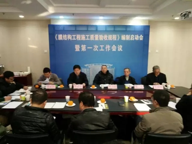 2016年12月17,《膜結(jié)構(gòu)施工質(zhì)量驗收規(guī)程》編制啟動會順利召開。來自中國建筑科學(xué)研究院、同濟(jì)大學(xué)、哈爾濱工業(yè)大學(xué)、上海交通大學(xué)、北京交通大學(xué)、北京市建筑設(shè)計研究院有限公司以及二十余家膜結(jié)構(gòu)企業(yè)的30多位專家出席了啟動會和第一次工作會議。規(guī)程的編制將進(jìn)一步完善我國膜結(jié)構(gòu)工程施工方面的技術(shù)和質(zhì)量標(biāo)準(zhǔn),提升行業(yè)技術(shù)水平,將填補(bǔ)我國在該領(lǐng)域的技術(shù)標(biāo)準(zhǔn)空白,同時也有助于發(fā)揮空間結(jié)構(gòu)分會在膜結(jié)構(gòu)行業(yè)的影響力。