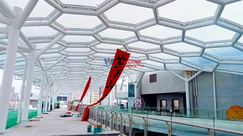 廣州茂名總匯天街商業(yè)街ETFE膜結(jié)構(gòu)工程地處電白市區(qū)繁華CBD路段,毗鄰電白萬達(dá)廣場(chǎng),2萬平方城市購物中心化商業(yè)街區(qū),配套星級(jí)酒店及地下智能停車場(chǎng)。該項(xiàng)目ETFE膜結(jié)構(gòu)展開面積約為2000平方米。