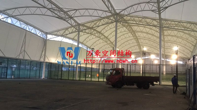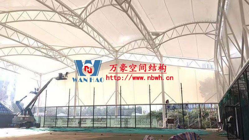 寧波(鄞州)網(wǎng)球中心遮陽(yáng)棚膜結(jié)構(gòu)工程二期項(xiàng)目,位于寧波市鄞州區(qū)首南街道文華路199號(hào)【寧波(鄞州)網(wǎng)球中心內(nèi)】,整個(gè)工程用鋼量220噸,膜結(jié)構(gòu)球場(chǎng)展開面積約6000平方米,由寧波萬(wàn)豪空間結(jié)構(gòu)工程有限公司承建。