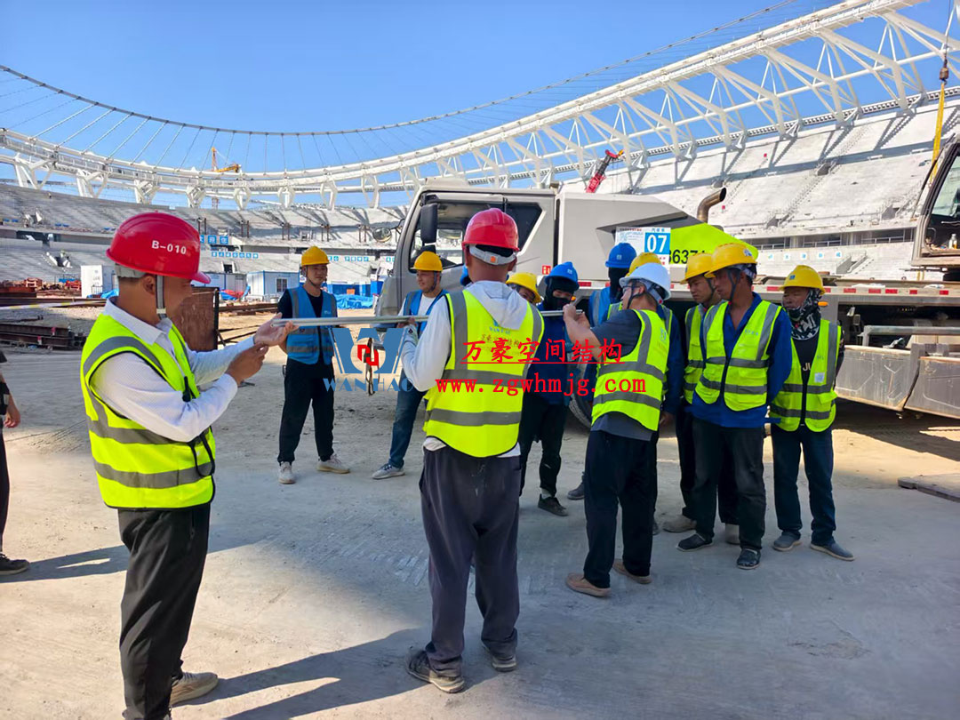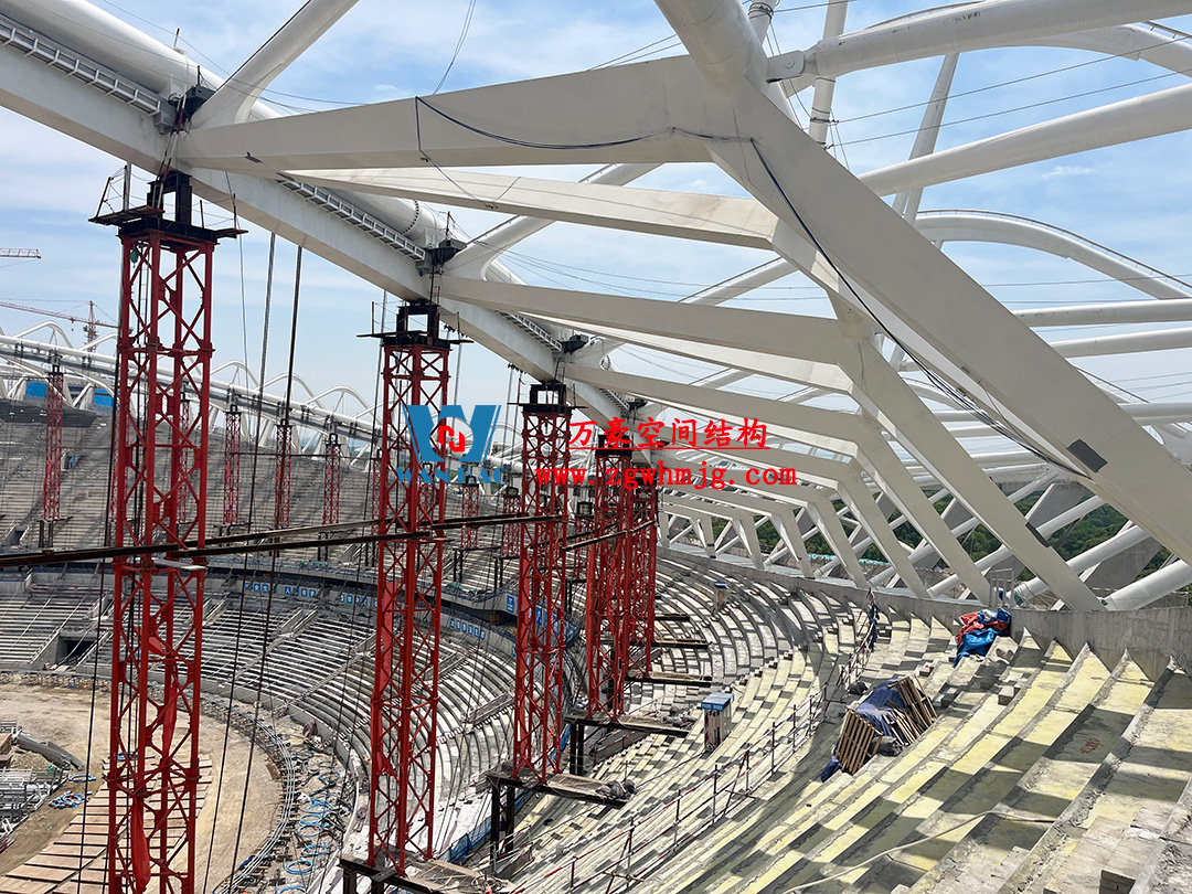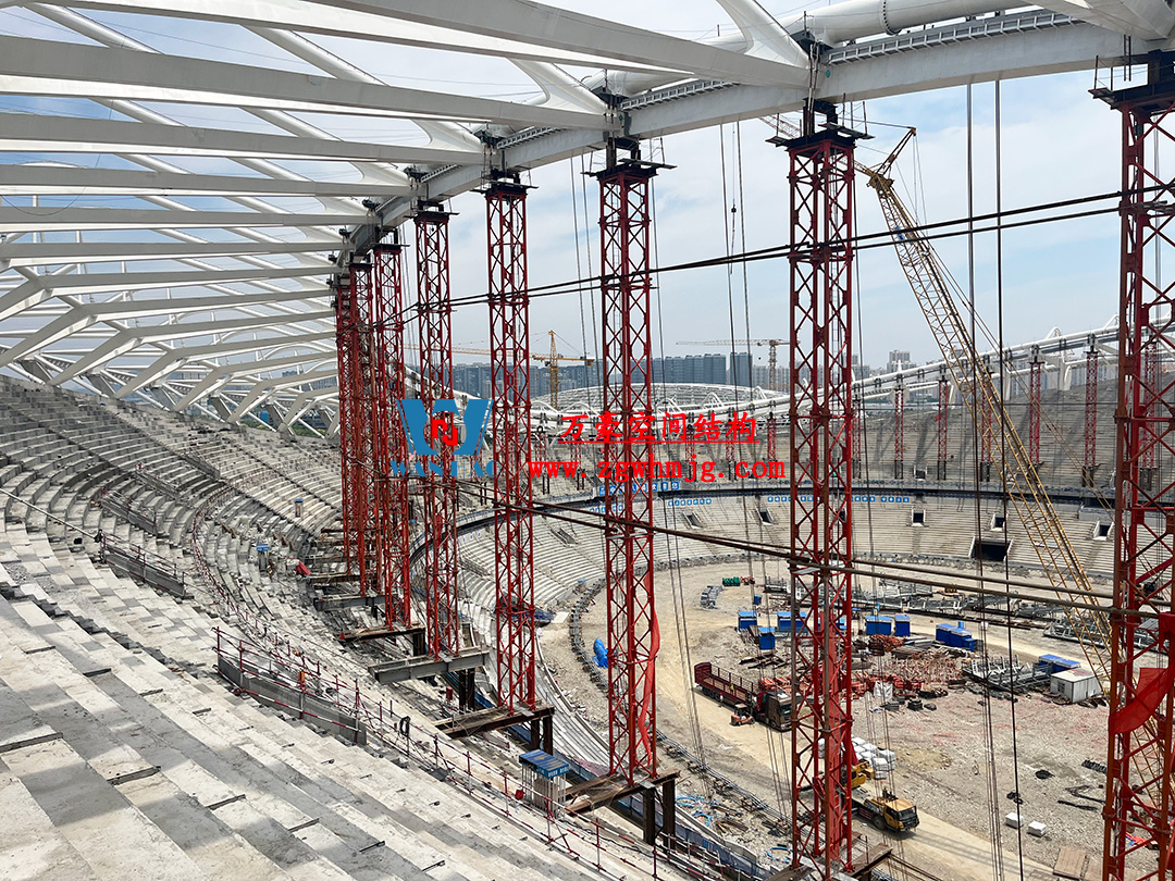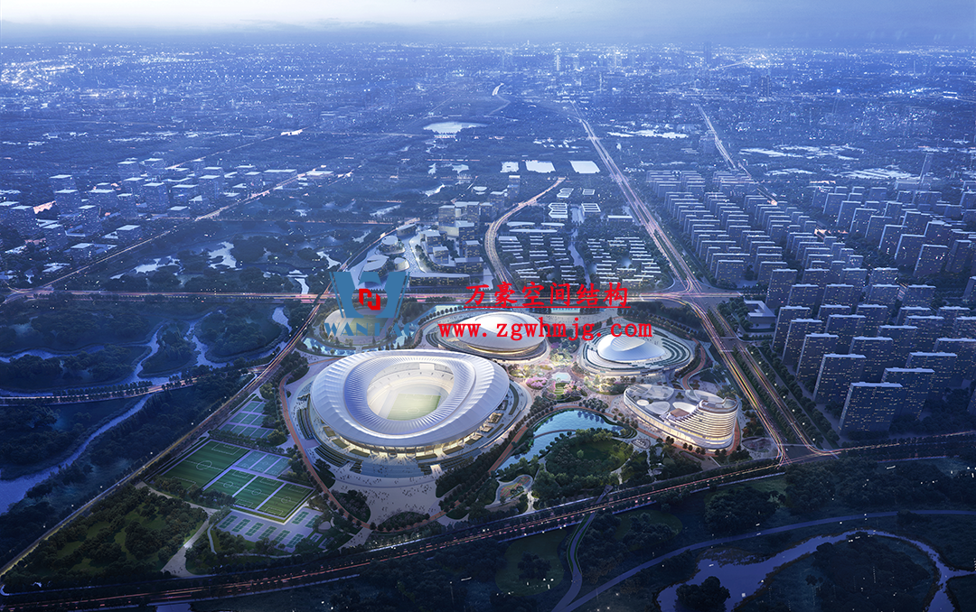 該項(xiàng)目采用車輻式索膜結(jié)構(gòu)體系,其中膜結(jié)構(gòu)由屋面內(nèi)環(huán)ETFE氣枕結(jié)構(gòu)、屋面外環(huán)PTFE膜結(jié)構(gòu)及立面PTFE膜結(jié)構(gòu)組成。 其中,屋面ETFE氣枕由萬豪空間結(jié)構(gòu)深化設(shè)計(jì)及安裝,ETFE氣枕投影面積20000平方米左右。