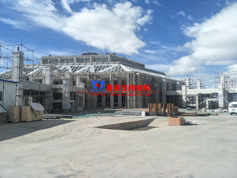 目前,觀光塔鋼膜結(jié)構(gòu)項(xiàng)目架子已搭建完畢,接下來(lái)要做的是防護(hù)工作。綜合辦公樓鋼膜結(jié)構(gòu)項(xiàng)目穹頂鋼構(gòu)預(yù)計(jì)月底之前完成;斜屋面已做好三個(gè)面,其中兩個(gè)面已做完油漆,預(yù)計(jì)七月中旬斜屋面鋼構(gòu)全部完成。