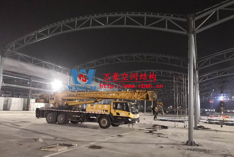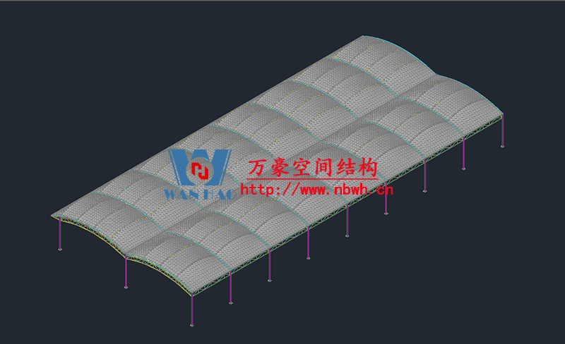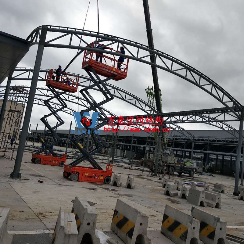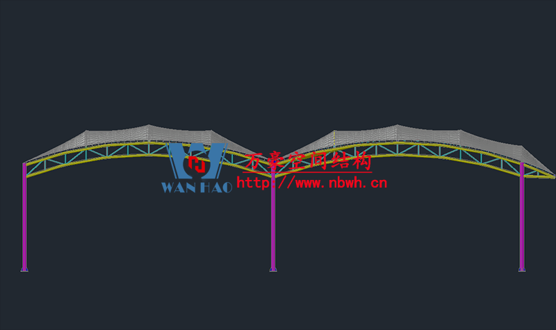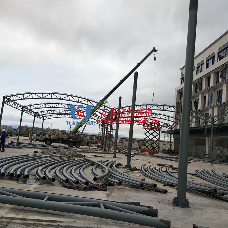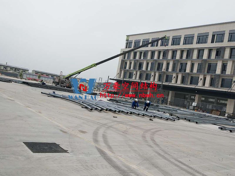 奉化方橋農副鋼結構雨棚工程位于浙江省寧波市奉化市內,此工程用鋼量100噸,膜結構展開面積3500平米,由寧波萬豪空間結構工程有限公司承建。