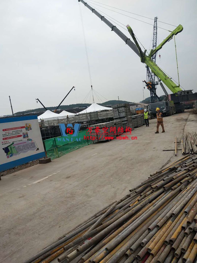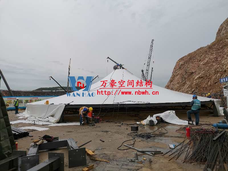 南京園博園穹蓋式膜結(jié)構(gòu)棚項目位于南京市江寧區(qū)湯山風(fēng)景區(qū),該工程由寧波萬豪空間結(jié)構(gòu)工程有限公司承建。 目前,第一個保溫棚已經(jīng)吊裝到位,接下來第二、第三個棚按順序拼裝和安裝。