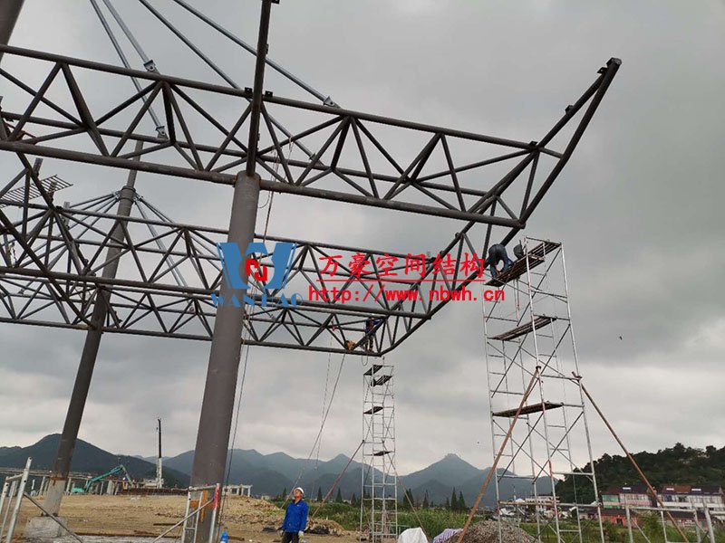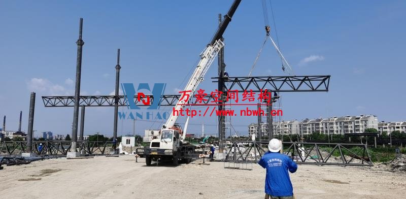 紹興福全高速收費(fèi)站頂棚工程用鋼量60噸,由寧波萬豪空間結(jié)構(gòu)工程有限公司加工和安裝。 目前,項目鋼結(jié)構(gòu)安裝完成。 期待整個工程的完工,來領(lǐng)略它別致的風(fēng)采。