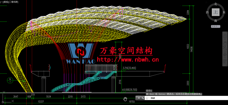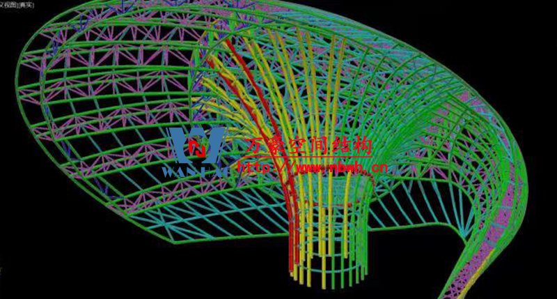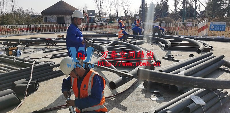 項(xiàng)目造型為貝殼造型,結(jié)構(gòu)復(fù)雜,施工難度非常大,幾乎每一根構(gòu)件都需獨(dú)立放樣定位。膜結(jié)構(gòu)則是采用ETFE與PTFE多種膜材組合的方式,更大限度的展現(xiàn)了膜結(jié)構(gòu)在商業(yè)領(lǐng)域的應(yīng)用。