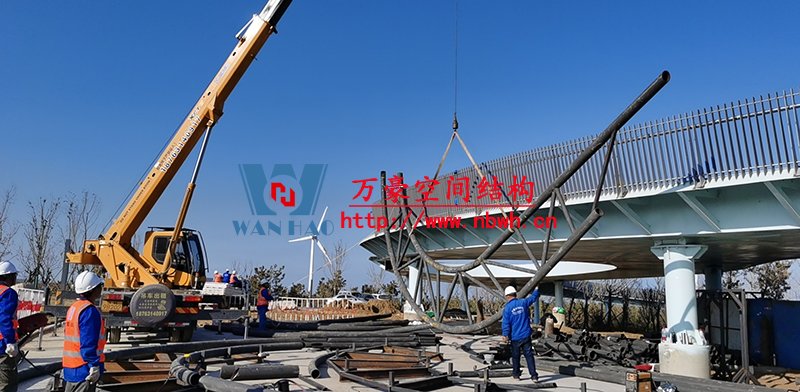 威海經(jīng)貿(mào)交流中心工程-大貝殼項(xiàng)目位于山東威海東部濱海新城,膜結(jié)構(gòu)展開面積3000平米,用鋼量300噸,由寧波萬(wàn)豪空間結(jié)構(gòu)工程有限公司承建。