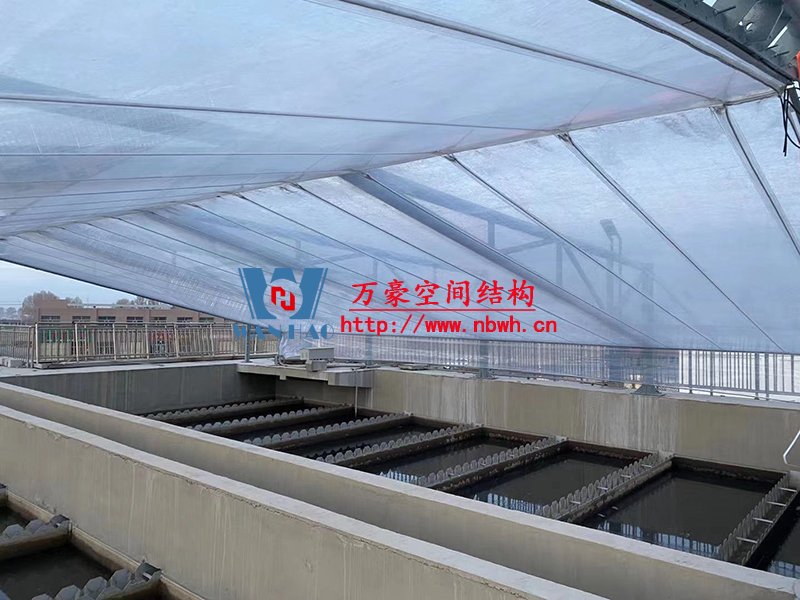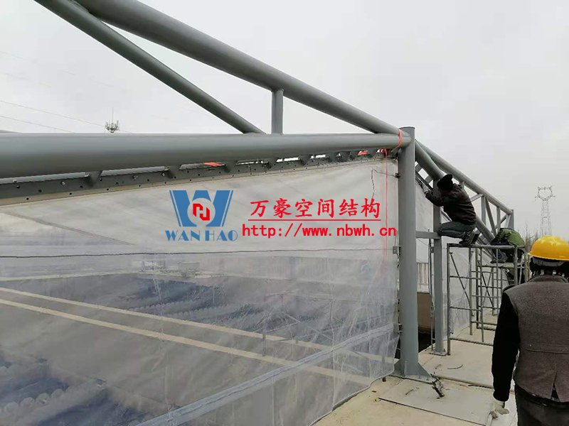 格爾木工業(yè)園昆侖工業(yè)區(qū)工業(yè)污水廠污水池保溫膜結(jié)構(gòu)工程膜結(jié)構(gòu)安裝中