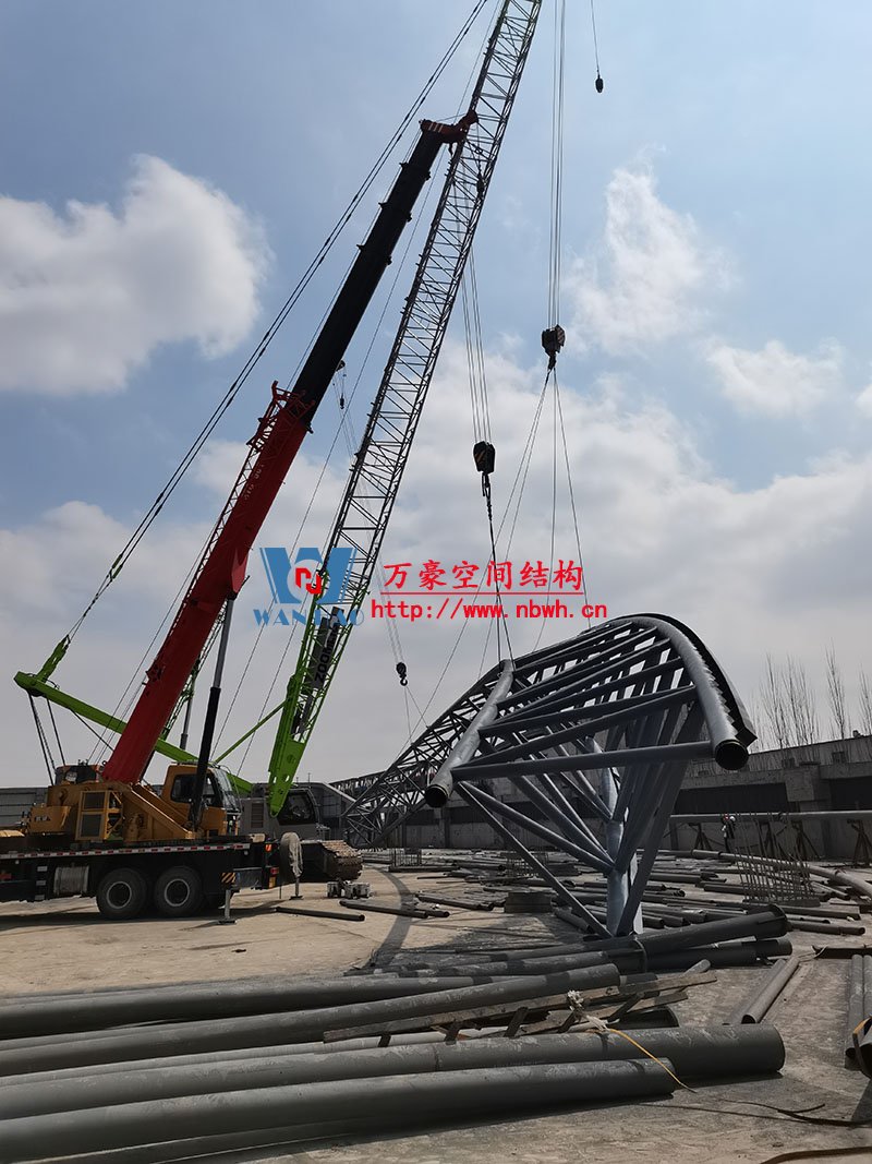 鋼結(jié)構(gòu)主桁架一共6跨,目前已完成2跨。