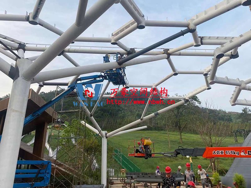 樂清鐵定溜溜樂園膜結(jié)構(gòu)工程位于浙江省溫州市樂清市,項(xiàng)目鋼膜結(jié)構(gòu)雨棚包括6號(hào)商業(yè)街蜂窩狀ETFE膜結(jié)構(gòu)、檢票口PTFE膜結(jié)構(gòu)、售票口PVDF膜結(jié)構(gòu)。