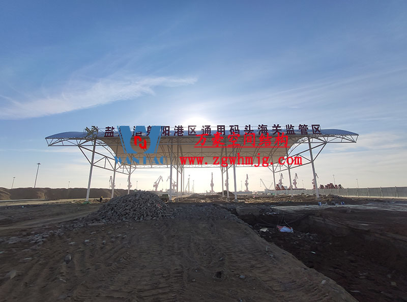 射陽港港區(qū)國家一類開放口岸一關(guān)兩檢查驗(yàn)設(shè)施項(xiàng)目位于江蘇省鹽城市射陽縣臨港工業(yè)園區(qū),用鋼量150噸,膜結(jié)構(gòu)展開面積3000平米,由寧波萬豪空間結(jié)構(gòu)工程有限公司承建。