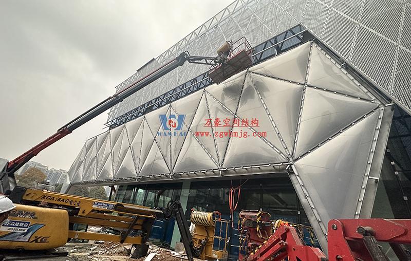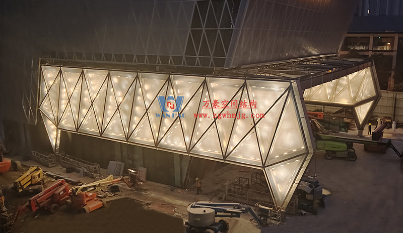 中建錦源匯廣場10-3#樓膜結(jié)構(gòu)工程位于四川省成都市高新區(qū)應(yīng)龍南一路與觀東二街交匯處,該項目ETFE膜結(jié)構(gòu)展開面積700平米,PTFE膜結(jié)構(gòu)展開面積700平米。由寧波萬豪空間結(jié)構(gòu)工程有限公司承建。