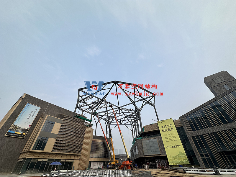 文一塘溪津門天幕鋼結(jié)構(gòu)及ETFE氣枕膜工程地址位于合肥市包河區(qū)杭州路與澳門路交匯處西北側(cè)。該項(xiàng)目用鋼量900噸,膜結(jié)構(gòu)展開面積7000平米,由寧波萬豪空間結(jié)構(gòu)工程有限公司承建。目前,項(xiàng)目鋼結(jié)構(gòu)吊裝中,施工人員現(xiàn)場(chǎng)緊抓時(shí)間節(jié)點(diǎn),與時(shí)間競(jìng)賽,保質(zhì)高效地加快整體施工進(jìn)度。