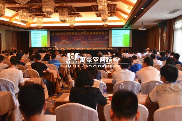 2016年6月18日-20日,由寧波萬(wàn)豪空間結(jié)構(gòu)工程有限公司承辦的中國(guó)鋼結(jié)構(gòu)協(xié)會(huì)空間結(jié)構(gòu)分會(huì)膜結(jié)構(gòu)專(zhuān)業(yè)委員會(huì)四屆一次會(huì)議和全國(guó)第八屆膜結(jié)構(gòu)技術(shù)交流會(huì)在寧波東錢(qián)湖錢(qián)湖悅莊酒店勝利召開(kāi),屆時(shí),邀請(qǐng)了浙江大學(xué)、上海同濟(jì)大學(xué)、北京工業(yè)大學(xué)等知名高校和中國(guó)建筑科學(xué)研究院、北京建筑設(shè)計(jì)研究院等知名研究院及知名企業(yè)的專(zhuān)家、教授、學(xué)者蒞臨參會(huì)。