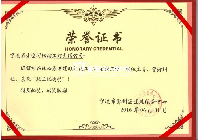 聯(lián)心菜市場(chǎng)膜結(jié)構(gòu)工程項(xiàng)目榮獲“施工優(yōu)秀獎(jiǎng)”