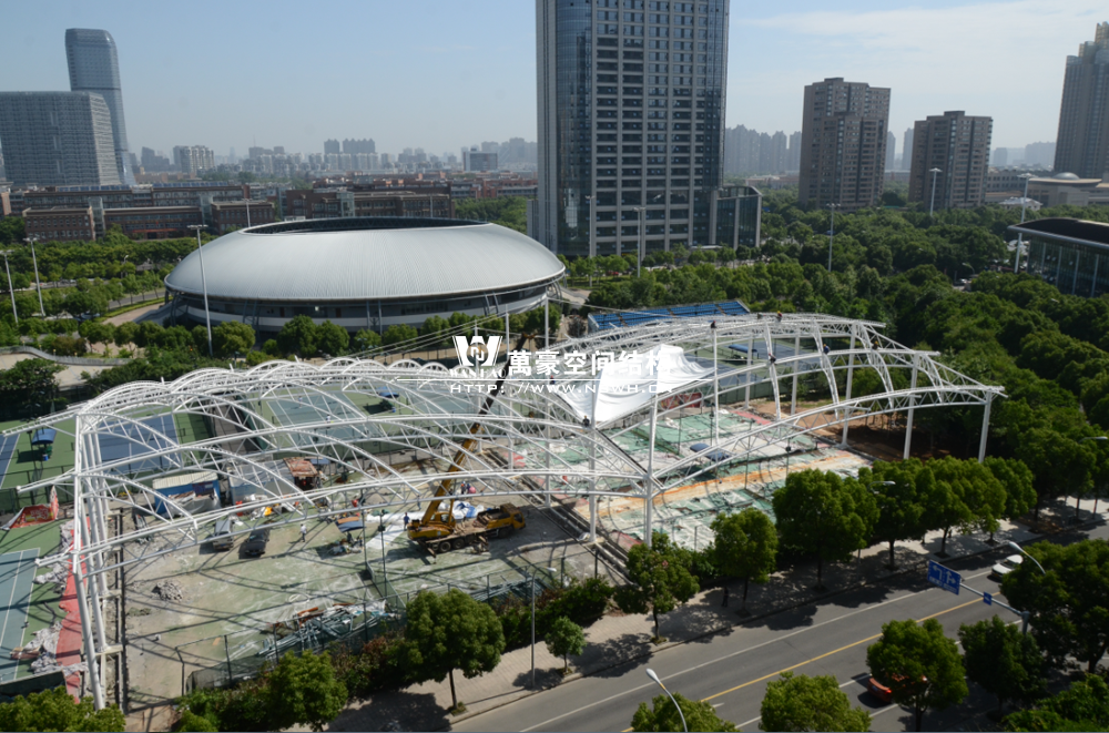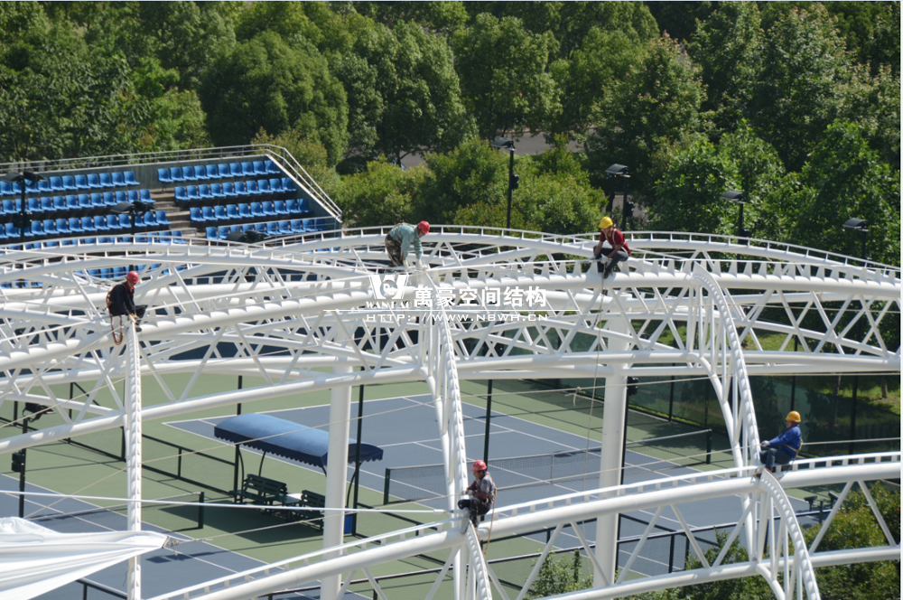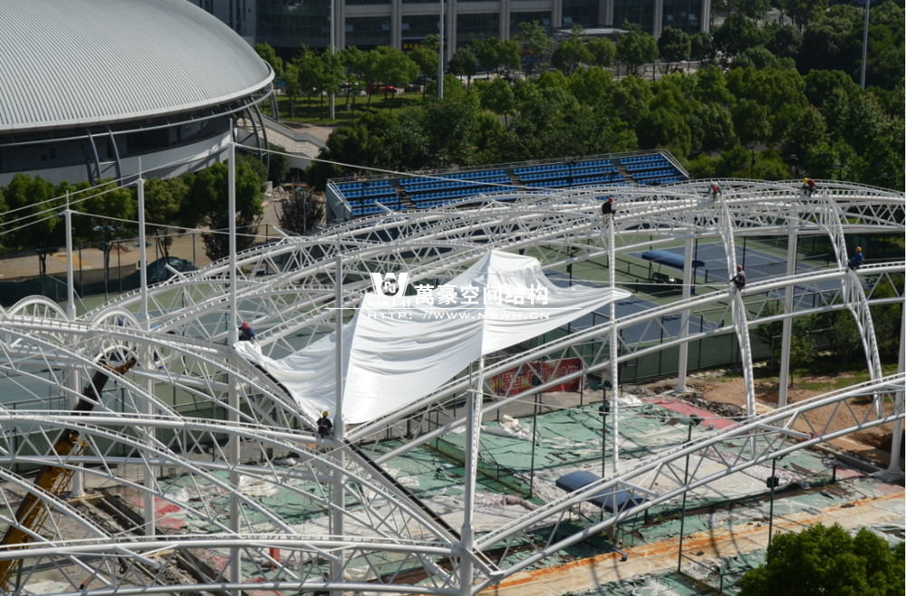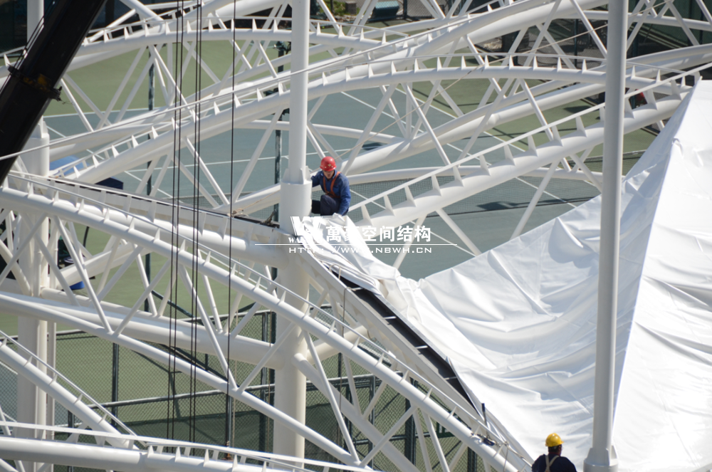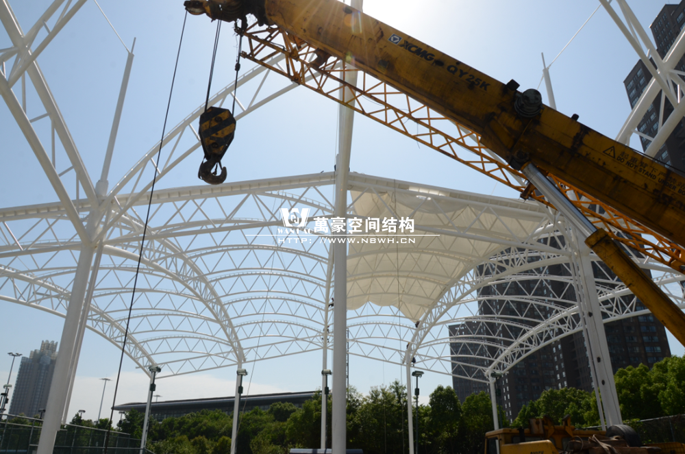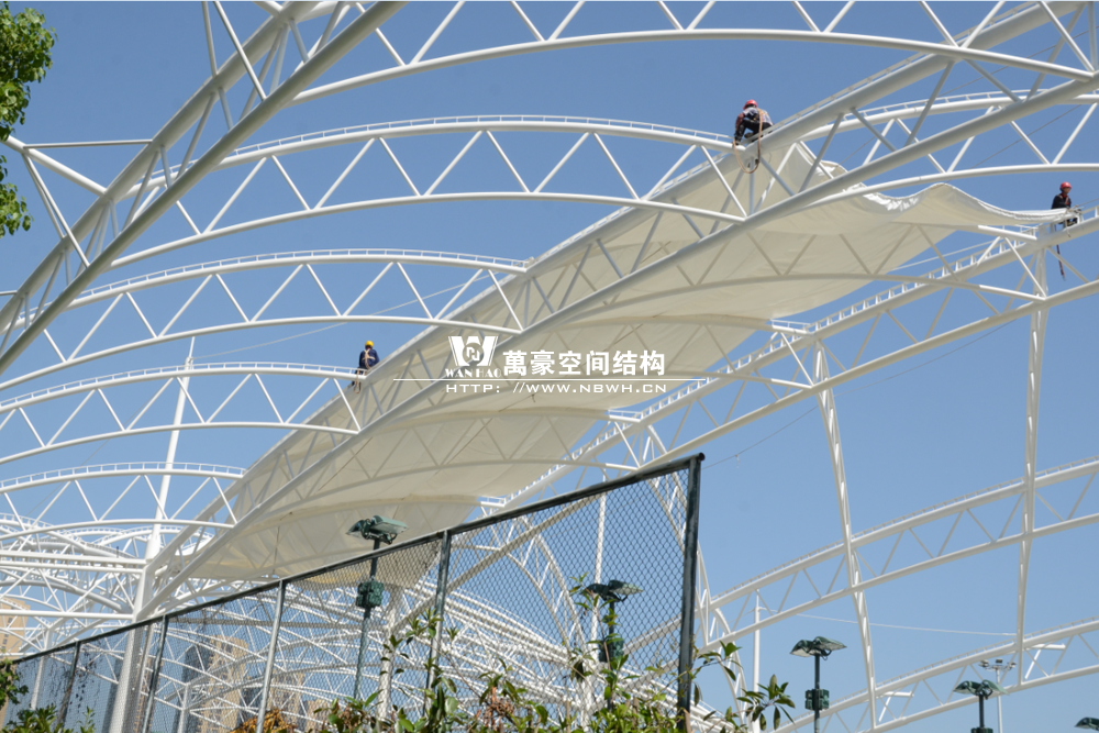 鄞州網(wǎng)球中心膜結構遮陽棚工程鋼結構已完成并經(jīng)初步驗收