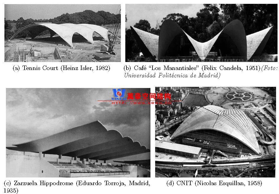 說網(wǎng)殼結構,就得從混凝土薄殼開始說起。在20世紀中葉,混凝土薄殼蓬勃發(fā)展。EduardoTorroja,F(xiàn)elix Candela,Nicolas Esquillan,Heinz Isler等在世界各地都實踐了很多混凝土薄殼作品。他們的殼體纖薄明快,放到現(xiàn)在看也都是建筑與結構融合的精品。