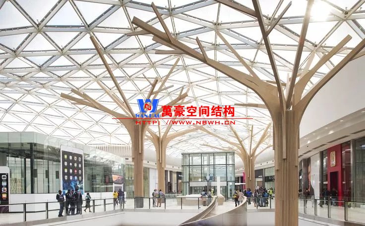 裙房之間的天幕為樹(shù)形柱支承