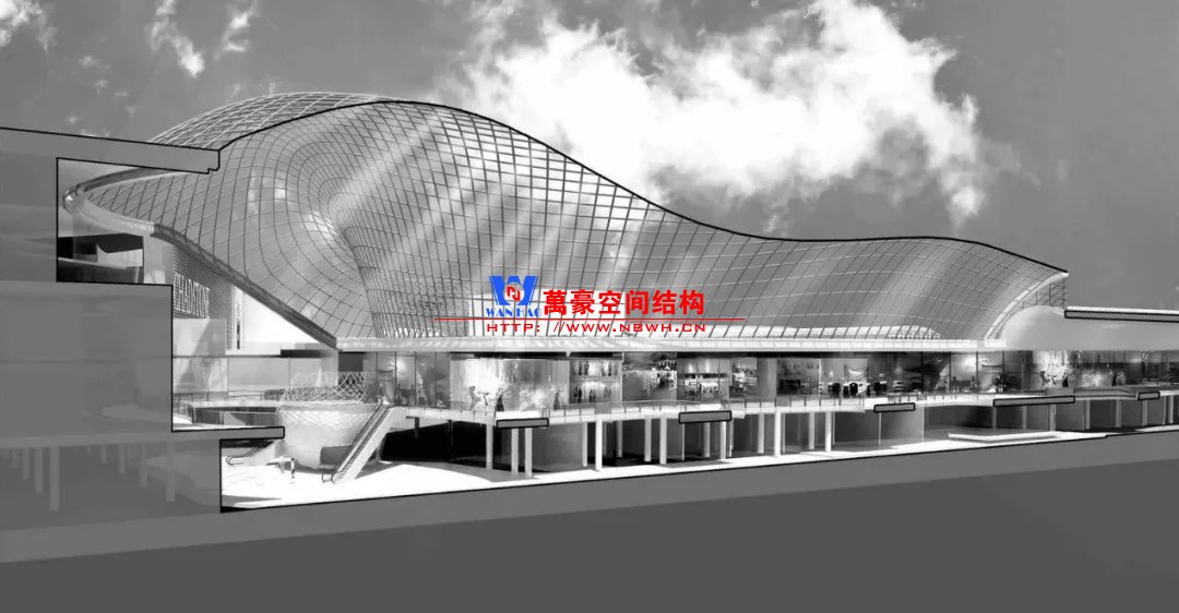 隨著建筑構(gòu)型手段和建造技術(shù)的進(jìn)步,出現(xiàn)了越來(lái)越多的自由曲面天幕。這一類(lèi)曲面沒(méi)有嚴(yán)密的數(shù)學(xué)邏輯,如何以輕巧的結(jié)構(gòu)形式構(gòu)建是結(jié)構(gòu)設(shè)計(jì)最大的難點(diǎn)。