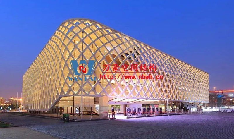 法國館被一種白色線網(wǎng)“包裹”,仿佛“漂浮”于地面上的“白色宮殿”,盡顯未來色彩和水韻之美。