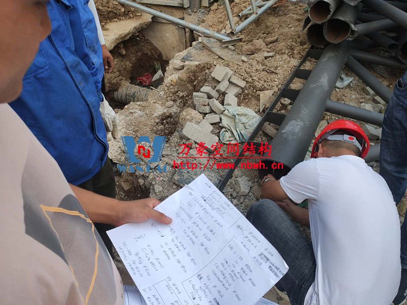 項目區(qū)域劃分為A區(qū),B區(qū),C區(qū),其中C區(qū)不滿足施工條件,先進行AB區(qū)的安裝。目前,AB區(qū)牛腿施工完成,拉拔實驗已合格完成,按流程進行后續(xù)柱子安裝,A區(qū)鋼結(jié)構(gòu)開始安裝。