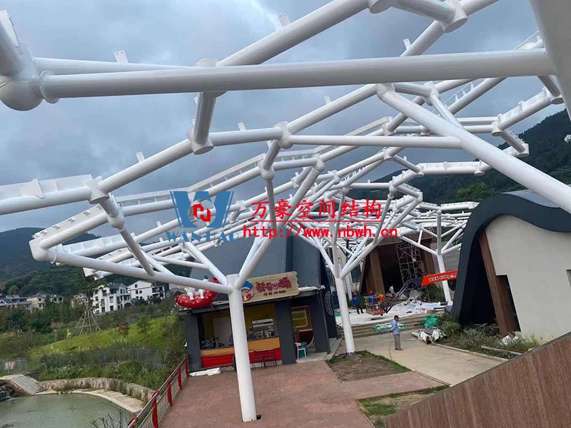 樂清鐵定溜溜樂園膜結(jié)構(gòu)工程位于浙江省溫州市樂清市,項(xiàng)目鋼膜結(jié)構(gòu)雨棚包括6號(hào)商業(yè)街蜂窩狀ETFE膜結(jié)構(gòu)、檢票口PTFE膜結(jié)構(gòu)、售票口PVDF膜結(jié)構(gòu)。