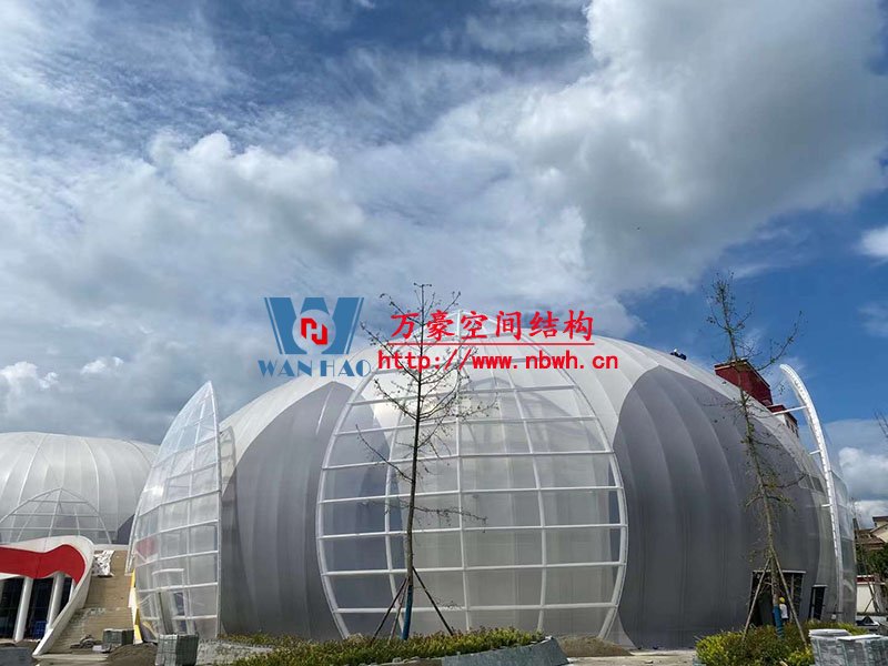 全封閉籃球館和多功能館結(jié)構(gòu)部分采用了部分珩架與單層雙曲面網(wǎng)殼組合,屋面膜選用了不同顏色不同材質(zhì)組合構(gòu)成了含苞待放的花朵,項(xiàng)目落成后將為當(dāng)?shù)伢w育活動(dòng)增添活力。