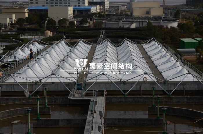 寧波北區(qū)污水處理廠廠址位于鎮(zhèn)海新泓口甬舟高速與化工區(qū)主干道交叉口附近,污水廠一期建設(shè)用地15.48公頃,膜結(jié)構(gòu)加蓋面積達(dá)一萬(wàn)多平方米。